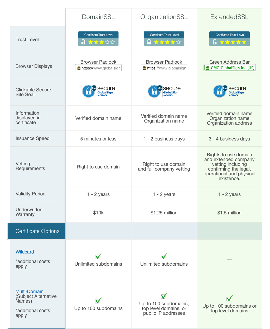 The range of SSL Certificates available in today’s SSL market is vast and over-complex. One of the key benefits of working with GlobalSign is our simplified and easily understood SSL product range.