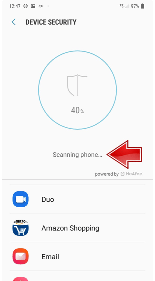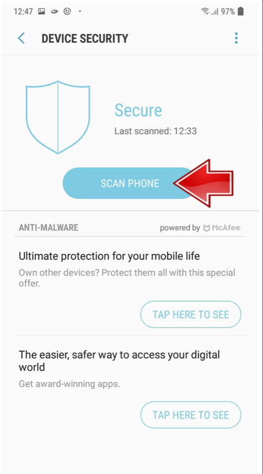 If your device might be having virus problems and they are detected, you will be asked to Ignore or Uninstall the app it came
