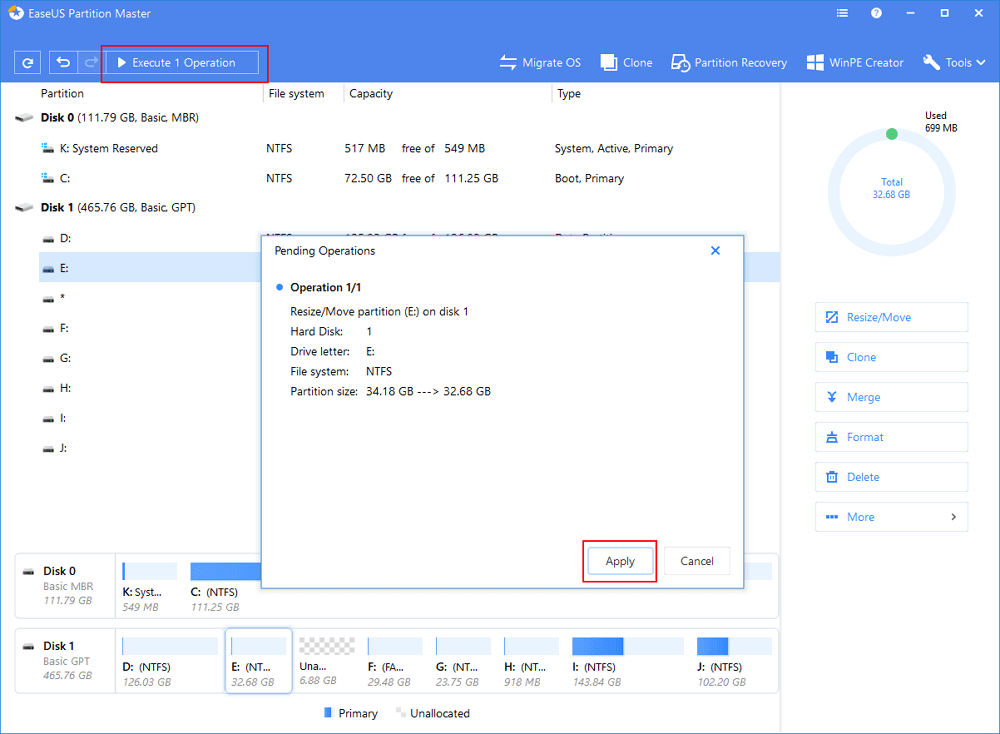 To save changes, click the “Execute Operation” button and then “Apply”.
