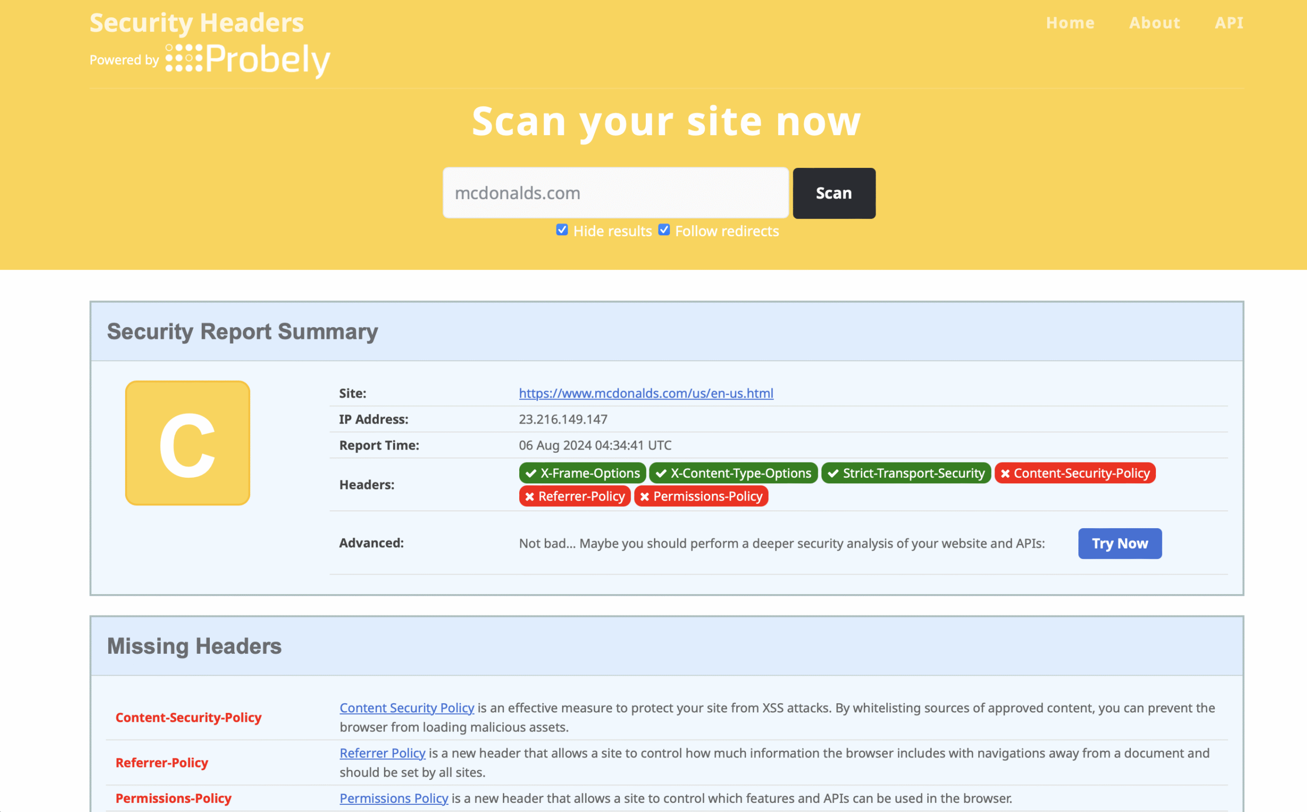 If you plan to sell your business and the potential buyer runs a Probely Security Check, will they find your website with an A+ Security rating?